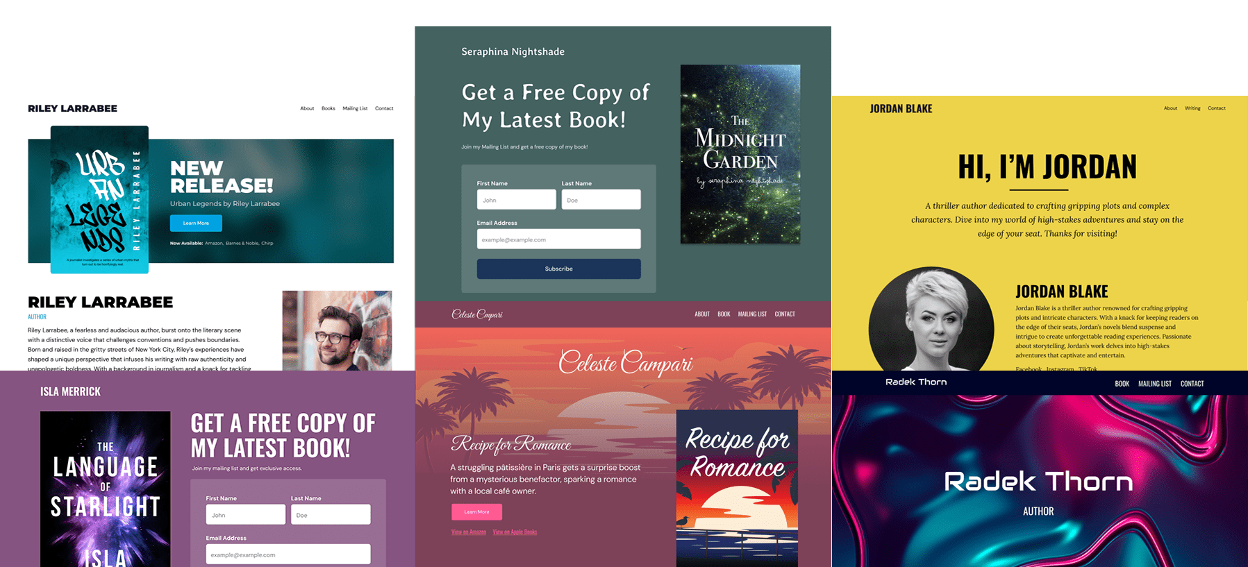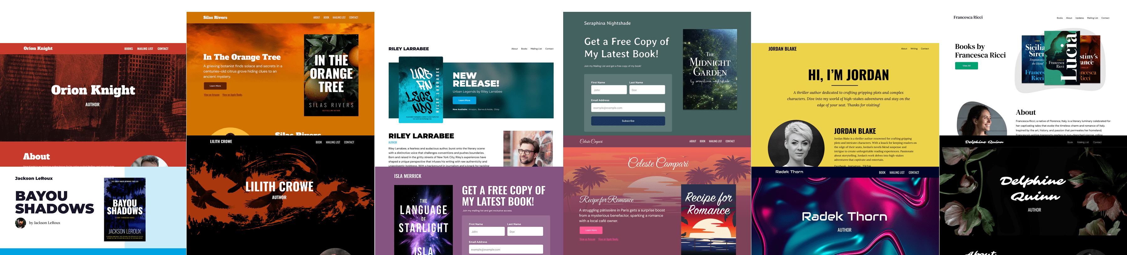 We have dozens of customizable templates and design modules that make it easy to display your books, link to retailers, grow your mailing list, attract an agent, and more, all without coding or hiring a contractor.
